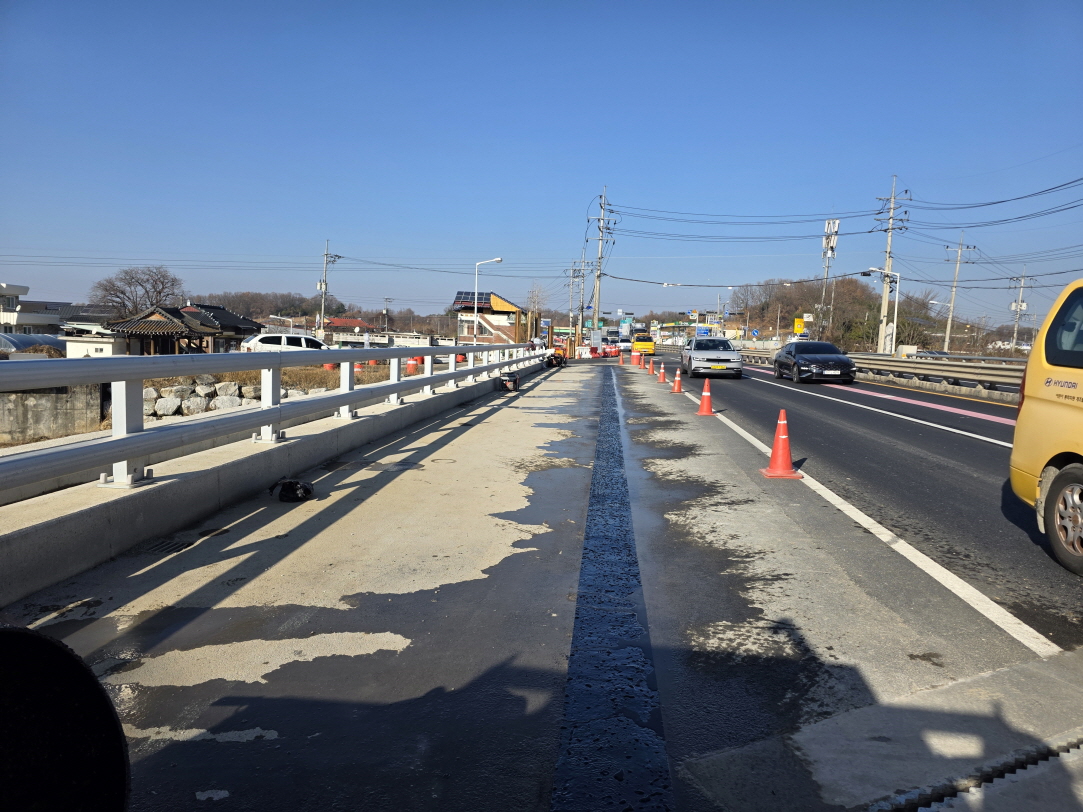 안녕하세요! 이지스건설입니다.신설만큼이나 도로유지보수현장역시 다양한 문제점들로 인해 발생되는데요. 아래 사진과 같이 슬래브와 방수층이 분리되거나,체류수의 용출현상 등과 같은 이유로 교면방수층의 하자는 발생하게 됩니다. 교량상판은 수분이나 제설재료로 쓰이는 화학재와 염분 등에서 차단되어야 하며 적잘한 방수재의 선정이 중요합니다! 이지스의 교면방수공법인 브리코트공법은 ks f 4932규격에 맞는 접착강도가 좋은 도막방수재를 사용하고, 격자형태의 그리드는 교량 상판과 아스콘포장의 일체화에 큰 역할을 하여 손상을 최소화하며 특히 포장장비에 의한 파손이 없다는 점이 최고의 장점입니다. - 바탕면정리 - - 건조 - - 프라이머 도포 - 도막방수재 도포 그리드 설치 기본적으로 '도로'라 하면 차량통행이 ..