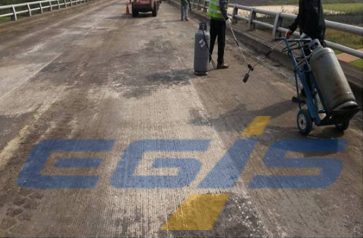 (교량 도막방수 시공 전 바탕 정리 작업)
